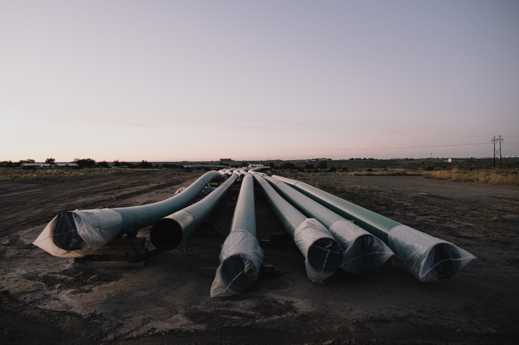 PIctured above: Pipeline waiting to be assembled, near Santa Fe, NM.